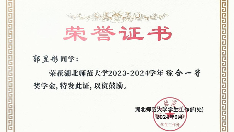 在专业学习上,始终保持着“钻”的精神与“严”的态度。她的绩点达到4.18,稳居专业第一;连续三年综合测评成绩位居专业第一。为夯实专业基础,主动考取多项技能证书:全国计算机二级合格证书、高中地理教师资格证、工业和信息化人才专业知识测评证书。此外,她连续三年斩获湖北师范大学“综合一等奖学金”,并两次获评“三好学生”。